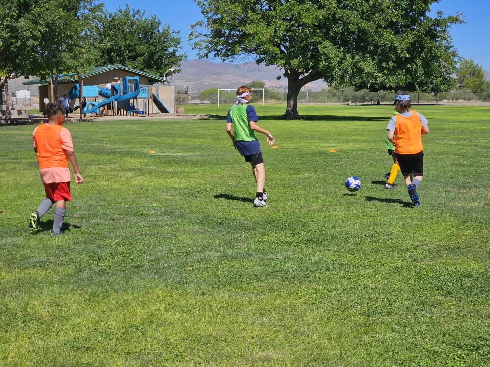- Space - the space on the field is limited. You must be aware of the space and where it's occupied and with who and what, and where it's empty. When your team has possession of the ball, you want to create space by spreading out both up and down the field and across the field, but you also want to stay connected (not be so far away you can't help and not hiding behind an opponent). When you personally have the ball, you want to send to some open space near you and not to an opponent when you don't have a good pass available to a teammate or a shot.